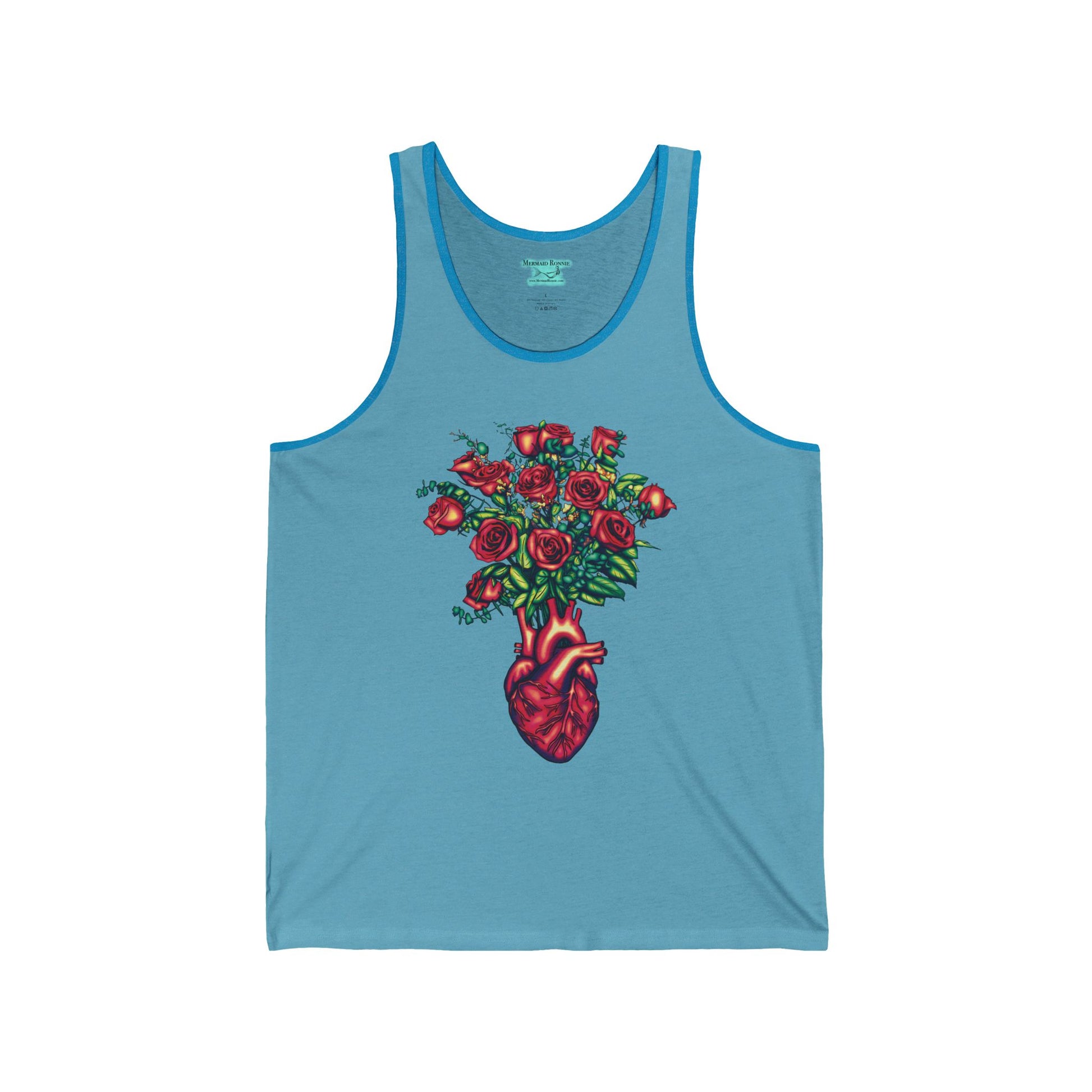 Anatomical Heart Tank Top, Unisex Adult Sleeveless Graphic Print, Heart and Rose