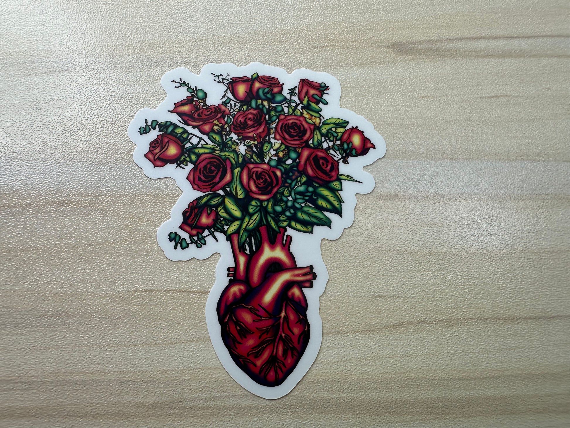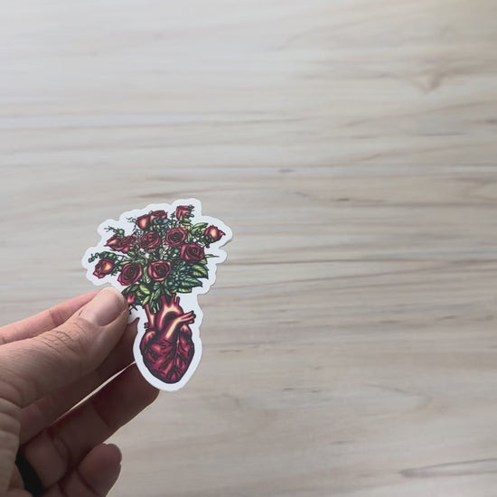 Anatomical Heart with Roses Sticker, Cardiology Vinyl Decal, Gothic Romance, Anatomy Sticker