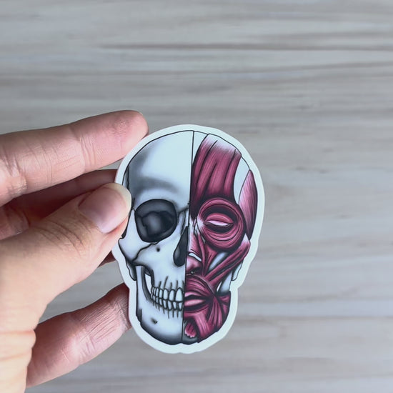 Anatomical Skull Muscle Sticker, Half Skeleton Half Muscular System Design, Medical Education Vinyl Decal