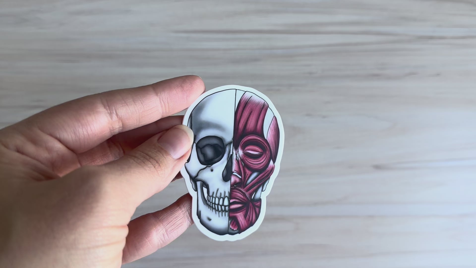 Transform any surface with this striking anatomical skull sticker featuring a unique split design - half showing the muscular system and half revealing the intricate skeletal structure underneath. This detailed vinyl decal is perfect for medical students, anatomy enthusiasts, or anyone fascinated by human anatomy. The high-quality sticker showcases precise anatomical details in a dramatic grayscale and red color scheme, making it both educational and visually striking. Ideal for personalizing laptops, notebooks, study materials, or creating an eye-catching display in educational settings. The durable vinyl construction ensures the decal maintains its appearance while adding a professional medical aesthetic to your chosen surface. This distinctive anatomical design serves as both a decorative element and a useful reference tool for studying facial musculature and skeletal structure.