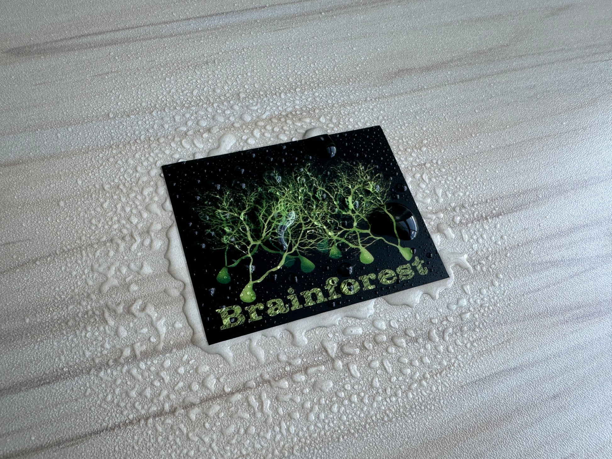 Transform your space with this captivating Brainforest vinyl sticker, featuring an intricate design inspired by Purkinje neurons - the remarkable cells found in our brains. The striking illustration showcases the beautiful, branching patterns of these neural cells arranged to form a mesmerizing forest-like scene against a dark background. Each neuron is depicted in a luminescent green hue, creating an ethereal glow effect that makes the design truly pop. Perfect for neuroscience enthusiasts, medical students, or anyone who appreciates the fascinating intersection of science and art. This decorative vinyl decal adds a unique, intellectual touch to laptops, notebooks, lab equipment, or any smooth surface. The detailed dendrites and distinctive cell bodies create an eye-catching conversation piece that celebrates the complexity and beauty of neural architecture. Ideal for both educational settings and personal decoration, this sticker brings together scientific accuracy and artistic appeal in one stunning design.