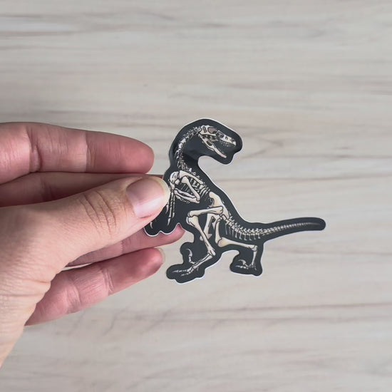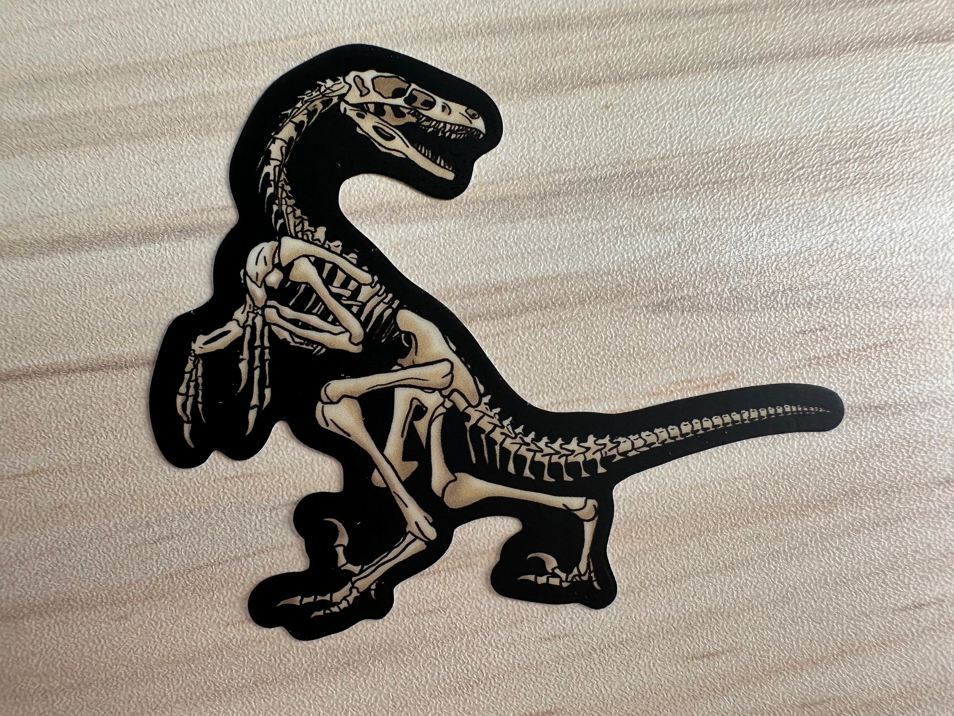 Dinosaur Velociraptor Skeleton Sticker, Black and Bone White, Dinosaur Fossil Vinyl Decal