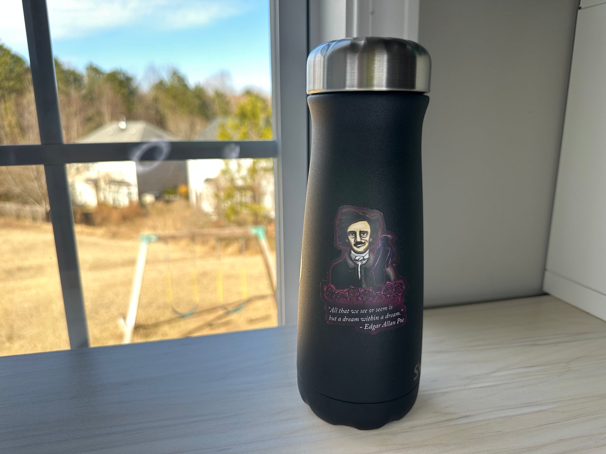 Edgar Allan Poe Sticker, Poe Quote Vinyl Decal, Gothic Literature, Raven and Roses, Dark Academia