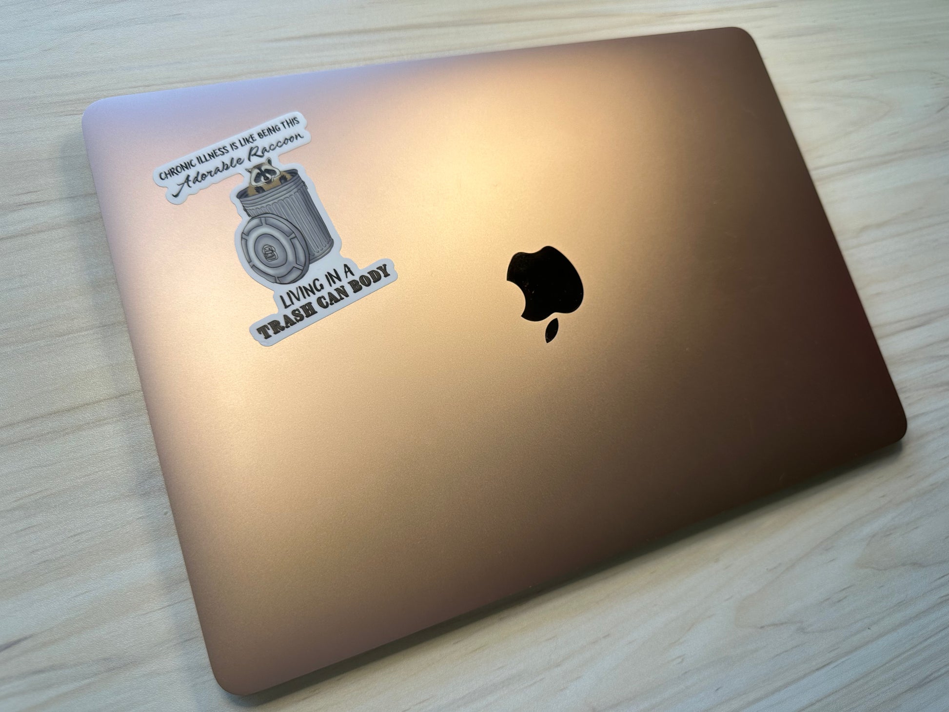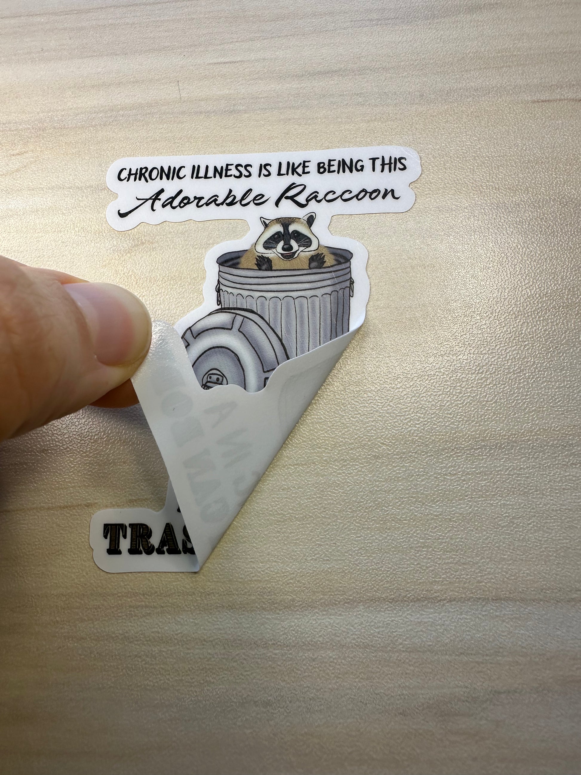 Funny Chronic Illness Vinyl Sticker, Raccoon in Trash Can Design, Invisible Illness Joke