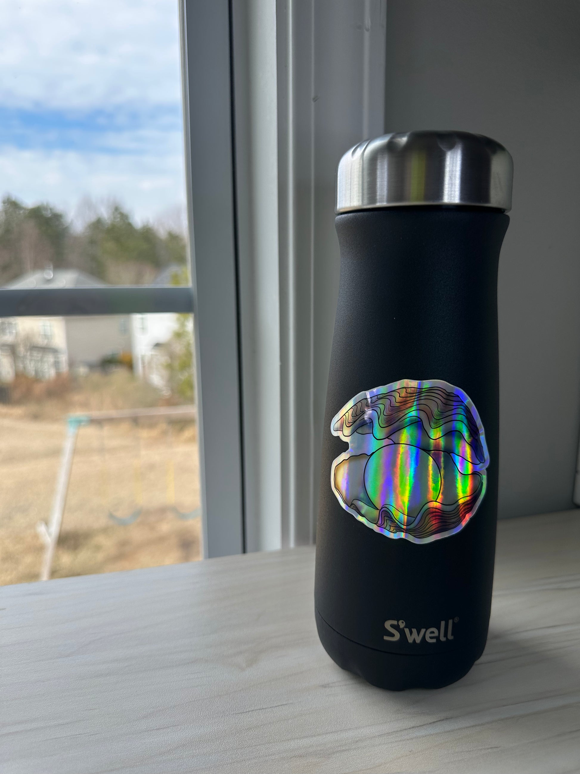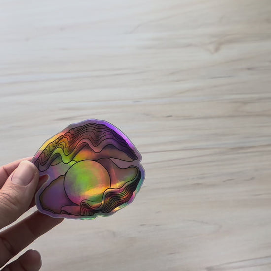 Holographic Pearl in Oyster Vinyl Sticker, Ocean Art Vinyl Decal, Nautical, Marine Biology Sticker