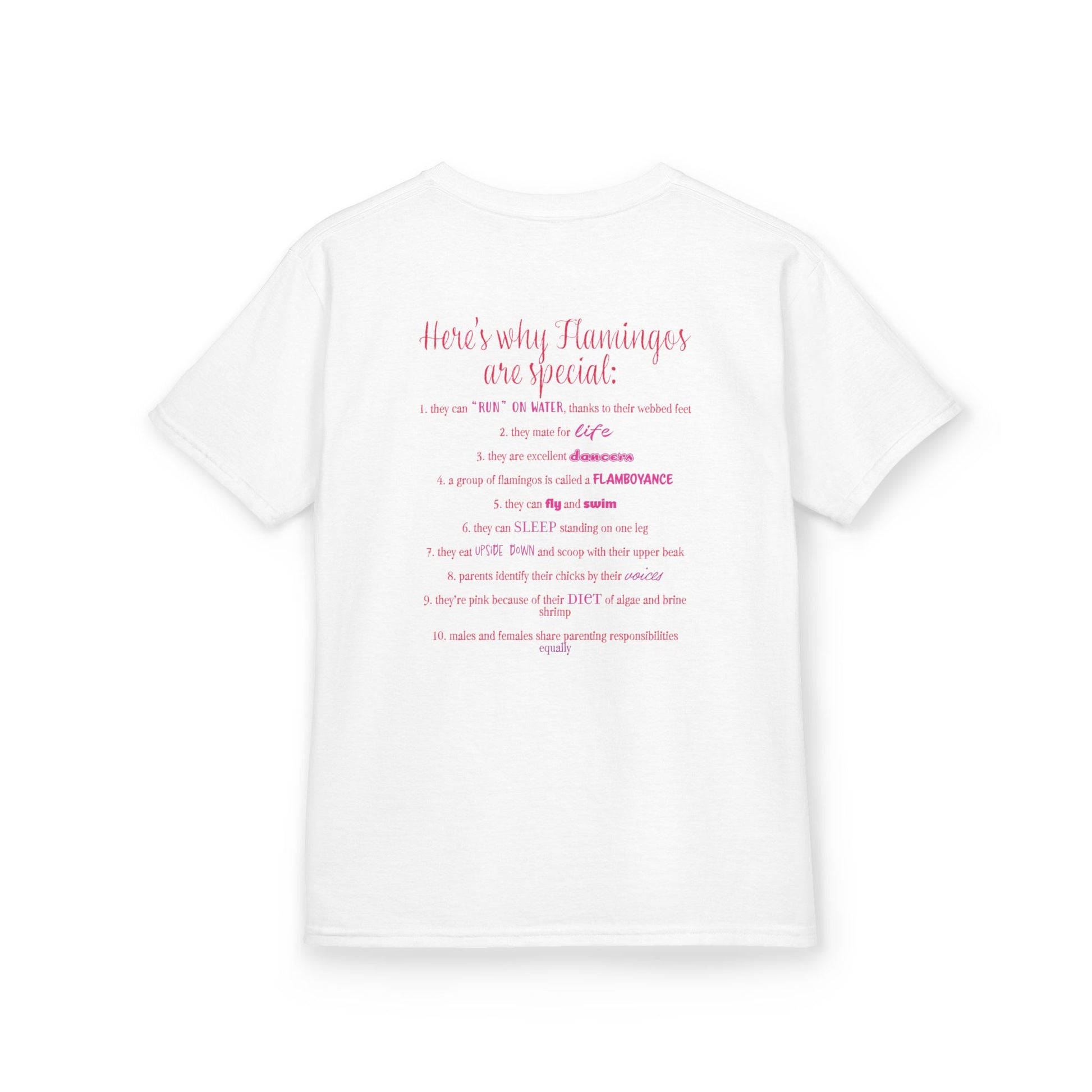 I Love Flamingos Kids T-Shirt, Animal Facts, Front and Back Print