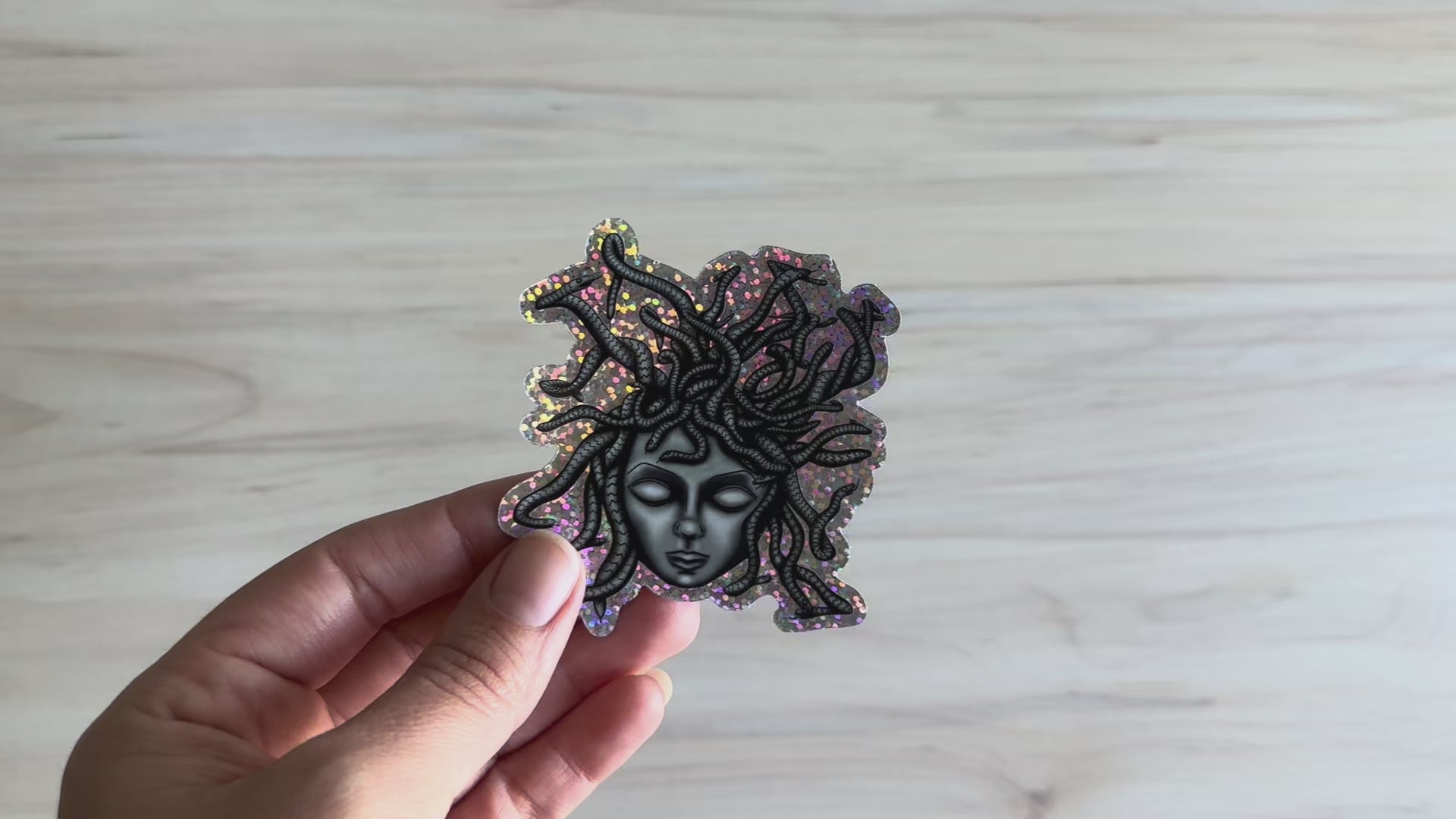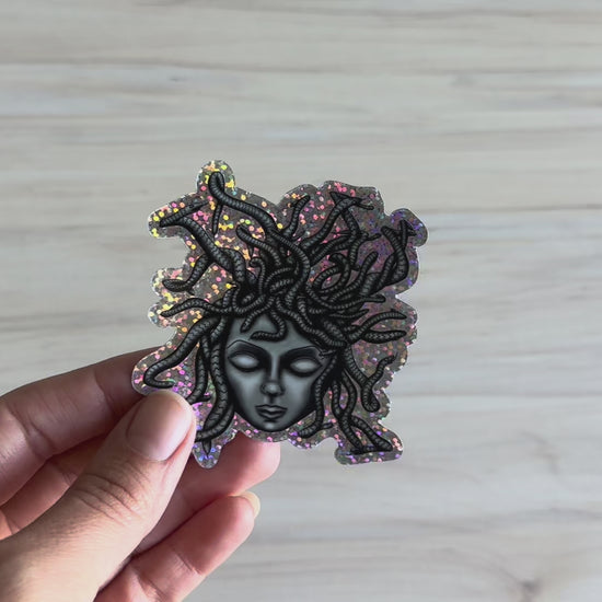 Medusa Glitter Sticker, Greek Mythology Vinyl Decal, Black and Silver Sticker, Snake Hair