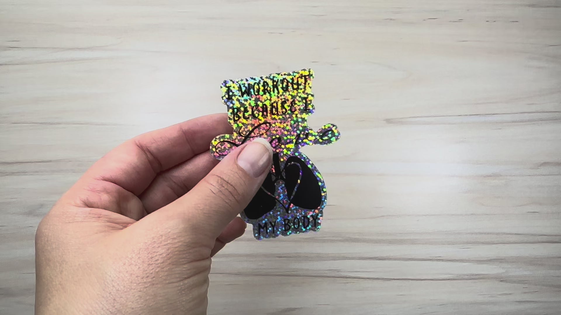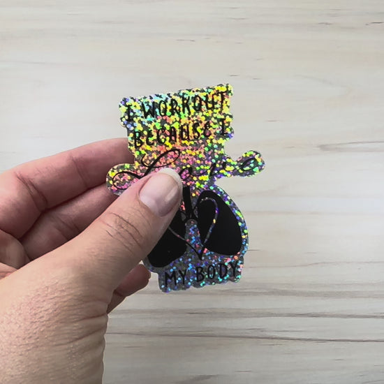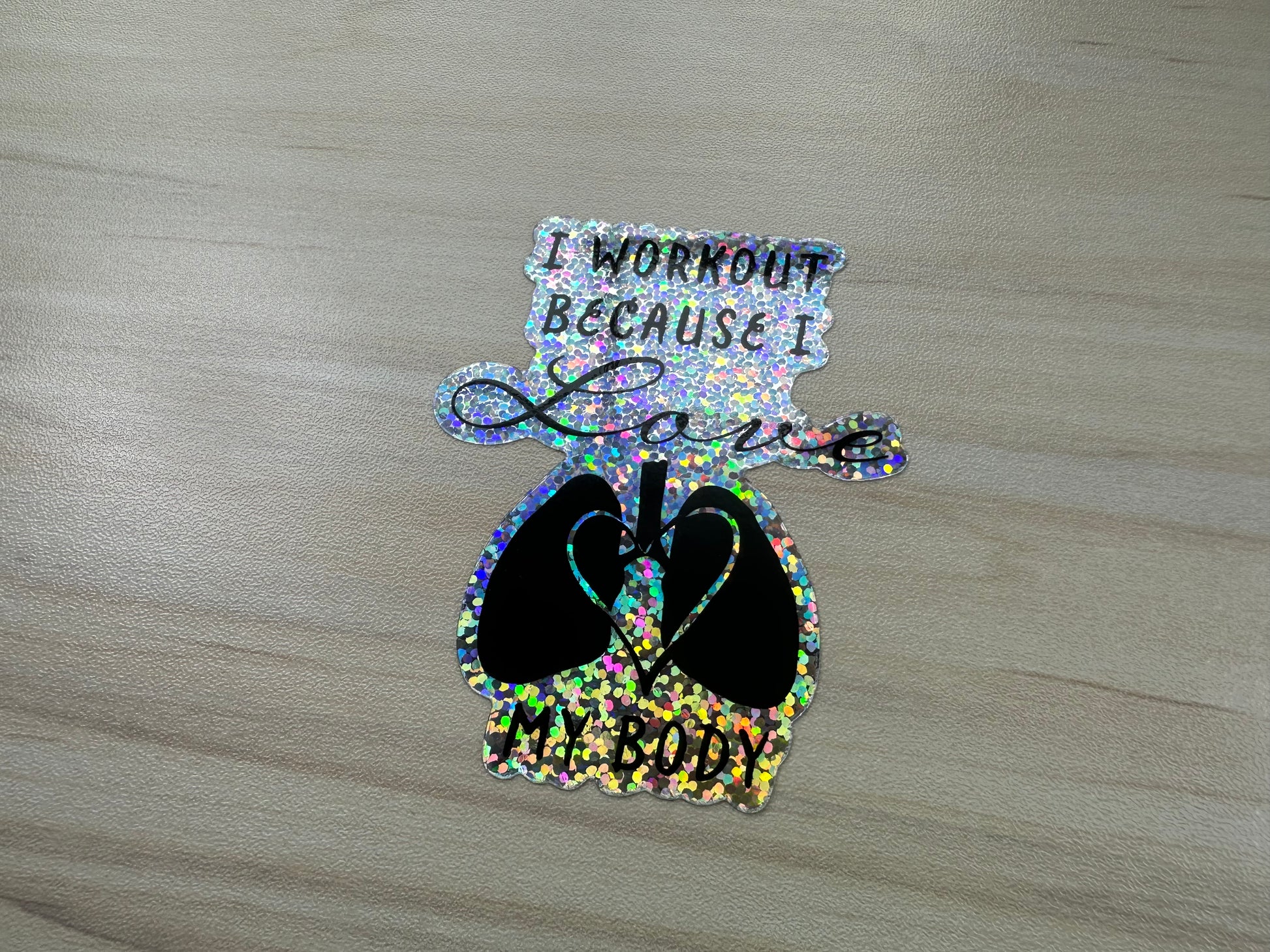 Motivational Fitness Glitter Sticker, I Workout Because I Love My Body Glitter Vinyl Decal, Heart and Lungs Graphic