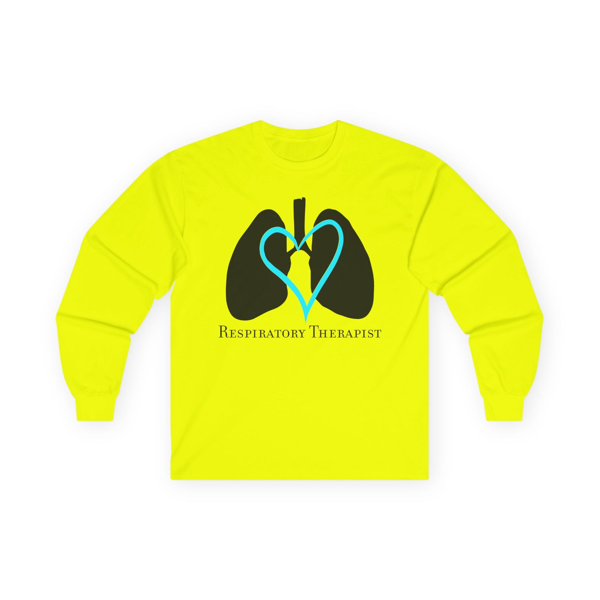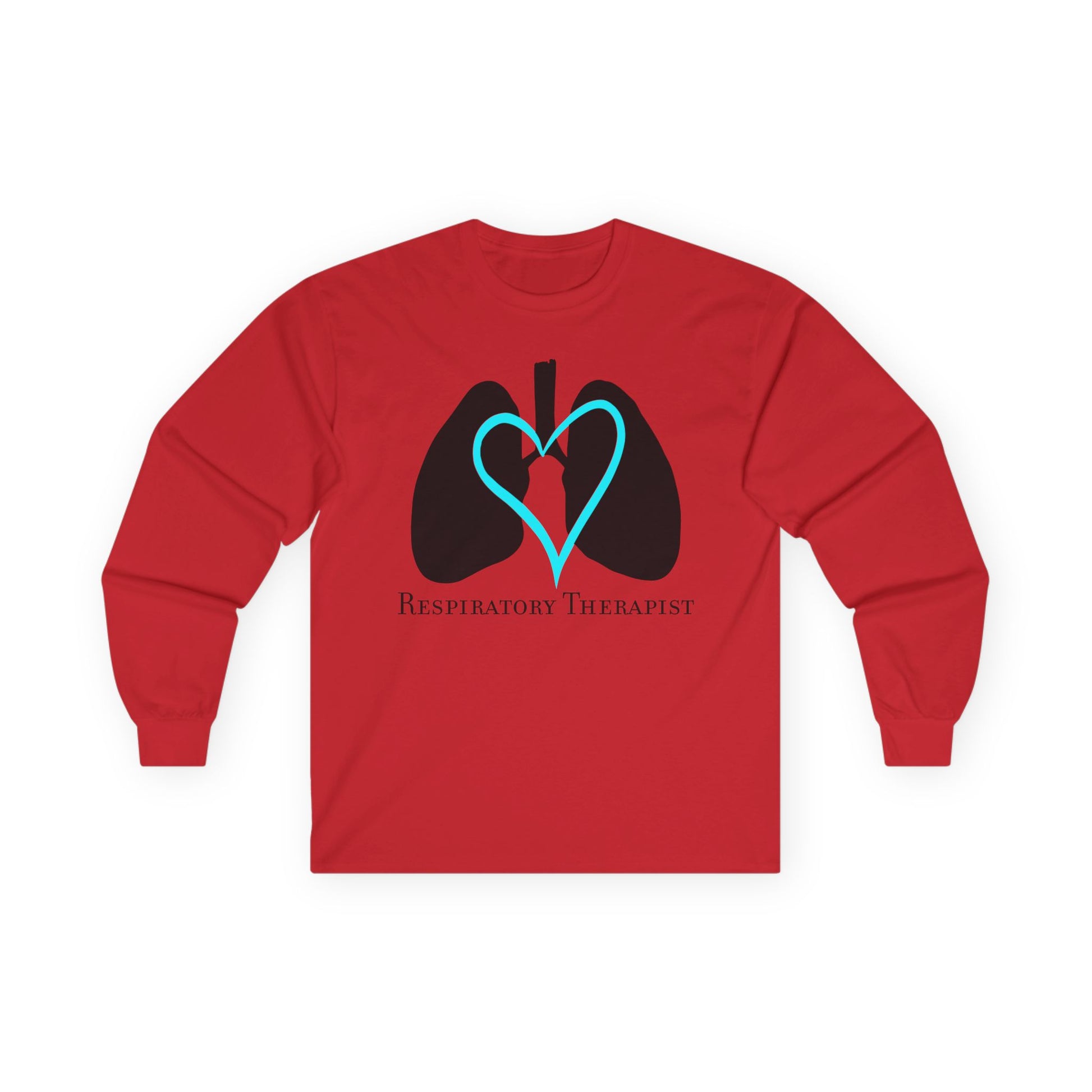 Show your pride in the respiratory therapy profession with this distinctive long sleeve t-shirt. The eye-catching design features a stylized representation of lungs surrounding a heart in contrasting black and turquoise colors, accompanied by elegant 'Respiratory Therapist' text. Perfect for healthcare professionals, students, or anyone passionate about respiratory care, this unisex shirt combines professional pride with contemporary style. The crisp base color provides an ideal backdrop for the striking lung-heart design, making it stand out in any setting. Made for comfort and durability, this versatile long sleeve tee is suitable for work, clinical rotations, or casual wear. The professional yet creative design serves as both a conversation starter and a representation of dedication to respiratory care. Whether worn during shifts, training sessions, or off-duty hours, this shirt lets you display your commitment to respiratory therapy with style and comfort.