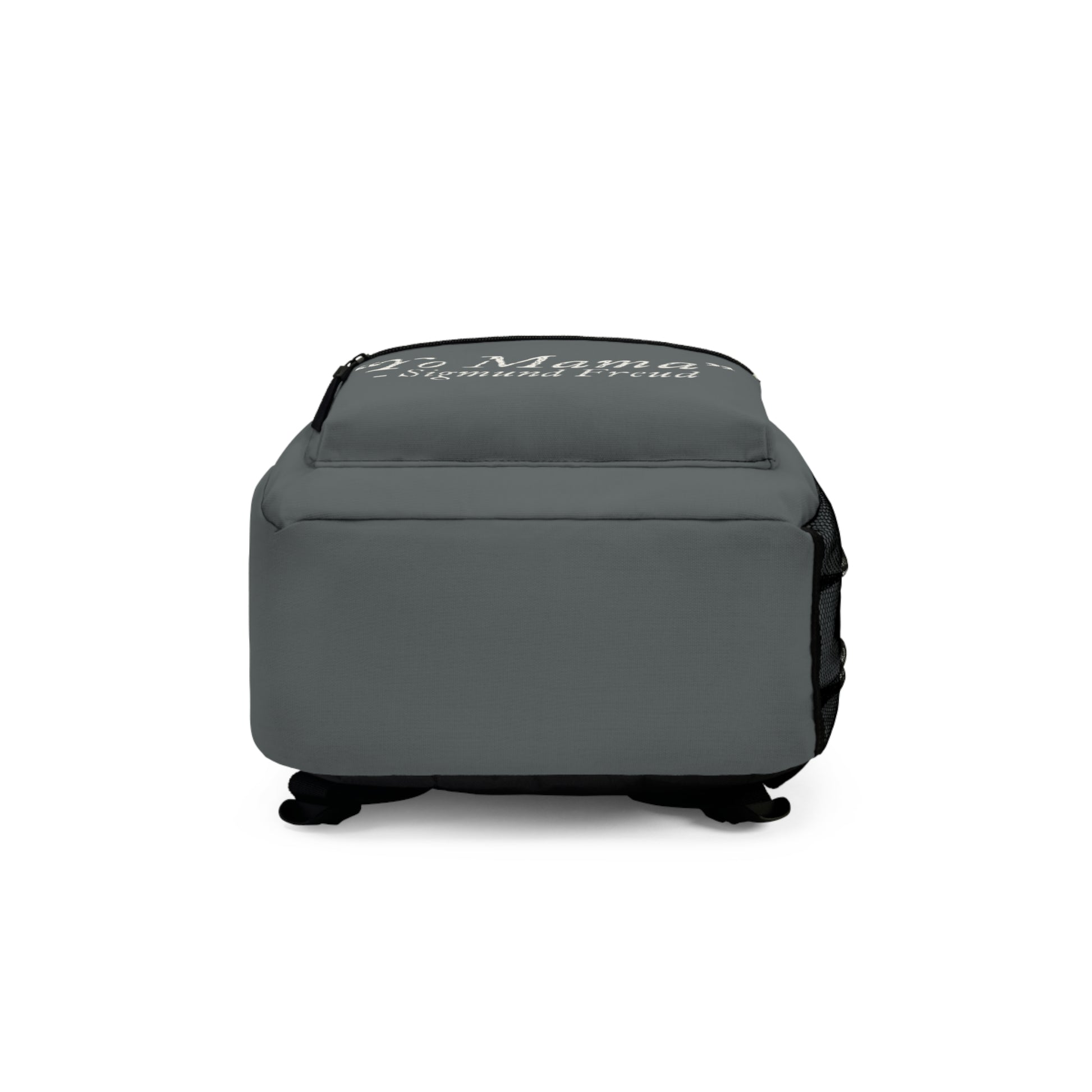 Sigmund Freud Backpack, Funny Psychology Book Bag, ‘Yo Mama’ Joke, Grey, Psychology Gift